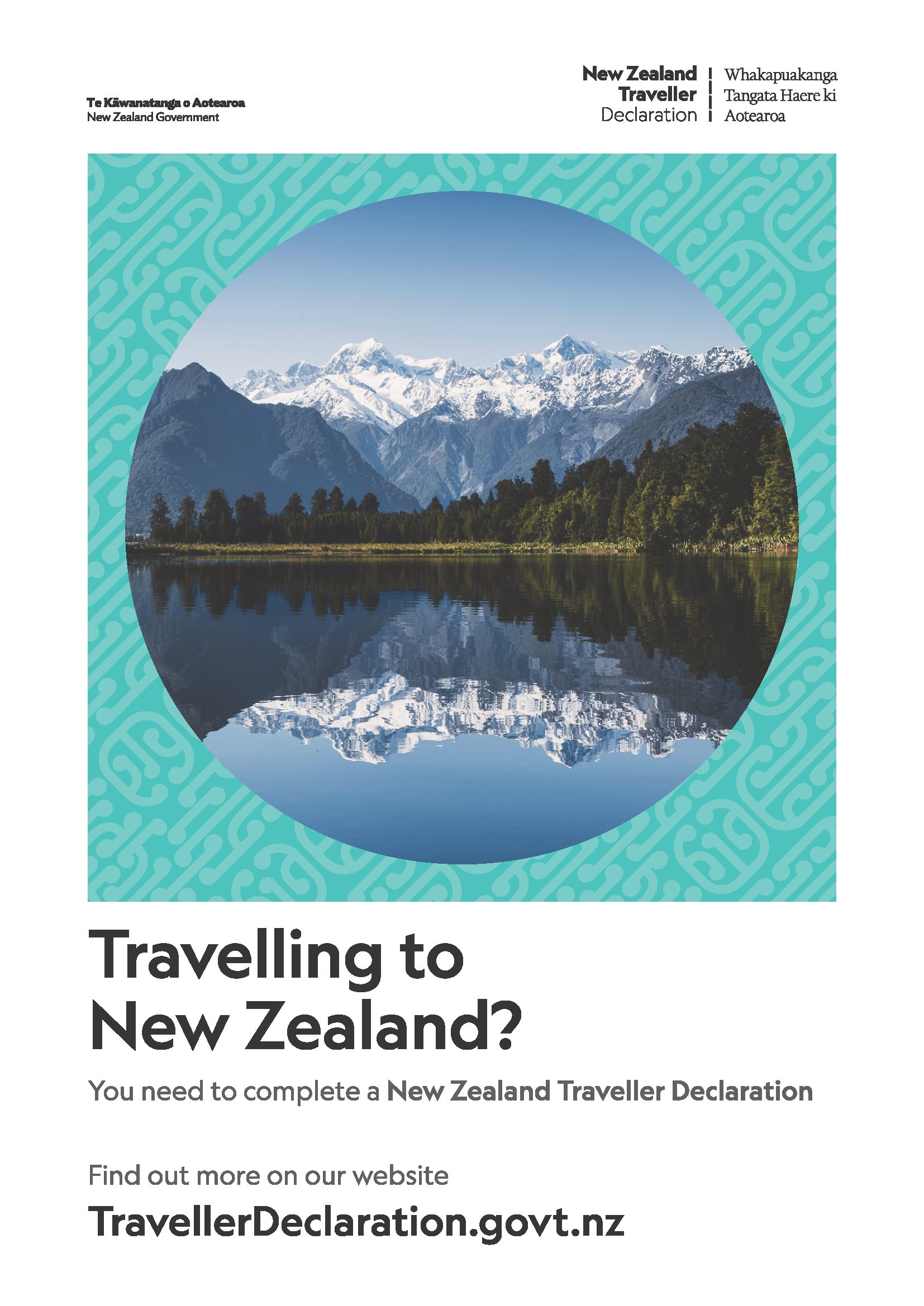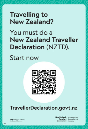 Everyone travelling into New Zealand must complete a New Zealand Traveller Declaration (NZTD).