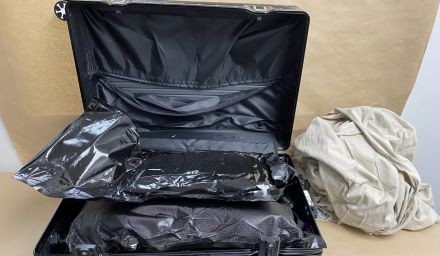 Inside two suitcases belonging to one of the passengers, Customs officers found a total of 11 individual vacuum-sealed packages containing methamphetamine.